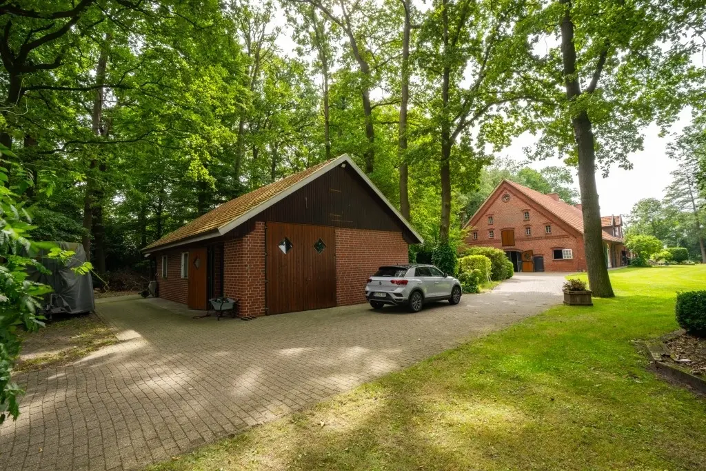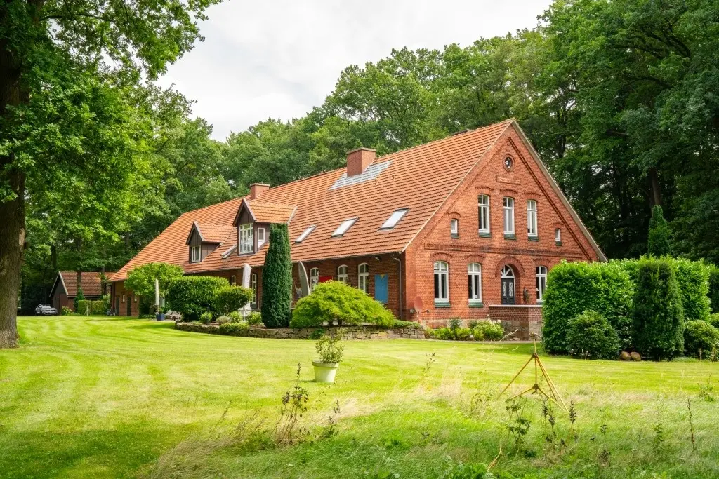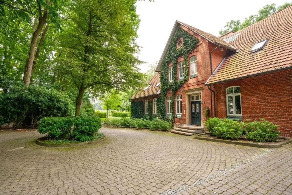 Te midden van het schilderachtige landschap van Clusorth-Bramhar, een landelijk stadsdeel van Lingen (Ems), ligt dit indrukwekkende historische landgoed – een zeldzame kans voor wie op zoek is naar stijlvol wonen, exclusieve paardenhouderij en een unieke landelijke levenskwaliteit.