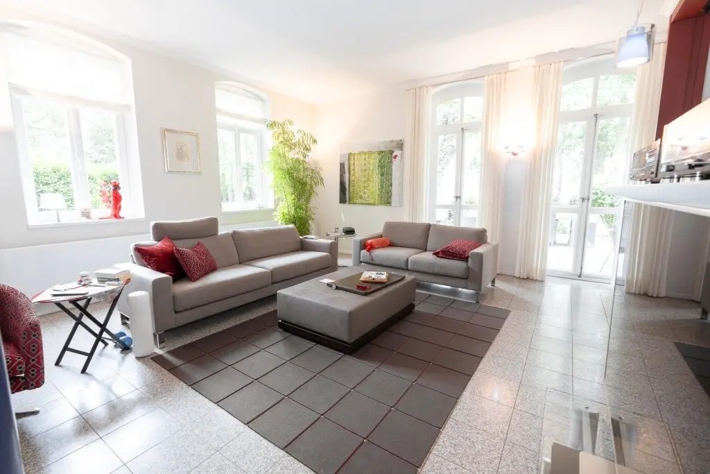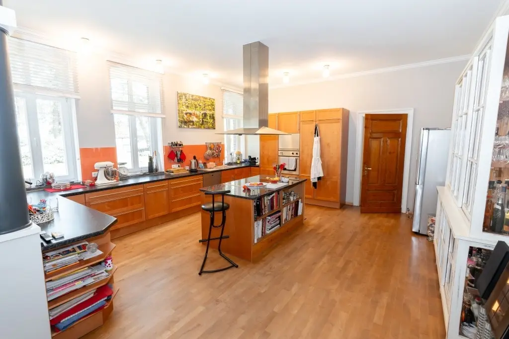 Het woonoppervlak van circa 520 m², verdeeld over twee stijlvolle wooneenheden, ademt grandeur en warmte. Hoge plafonds, natuurstenen vloeren, open haarden, vloerverwarming en maatwerk inbouwkasten zorgen voor een luxueuze woonbeleving.