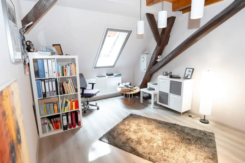 Het charmante, vrijstaande vakwerk-gastenhuis (circa 1900) is in 2000 volledig gerenoveerd en biedt circa 80 m² woonoppervlak.