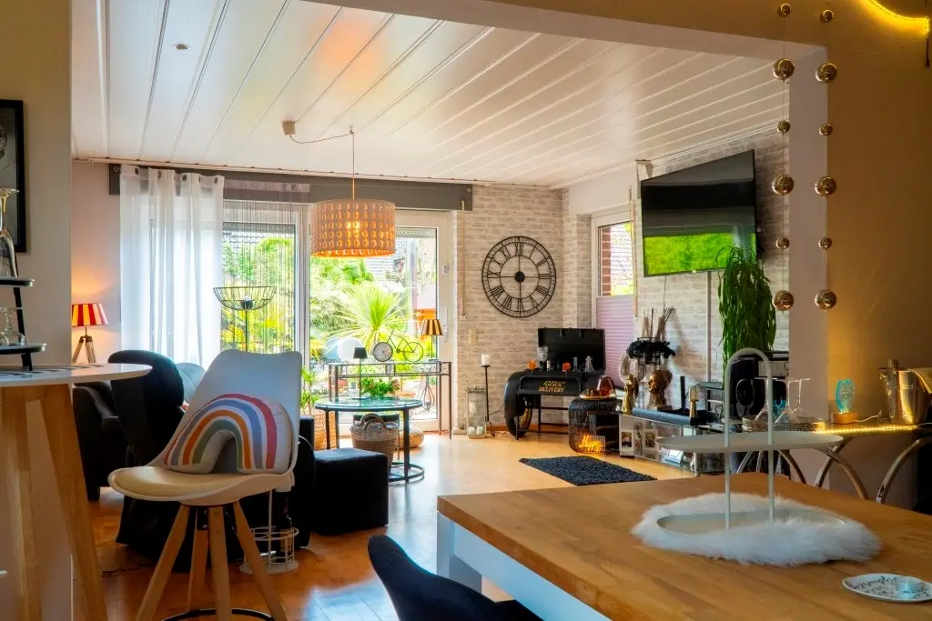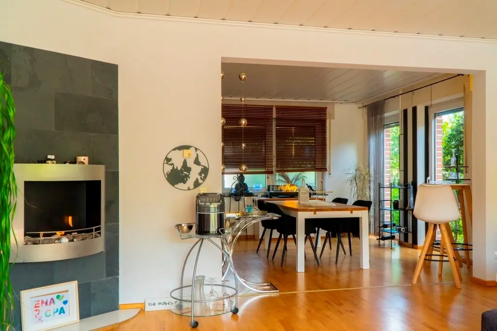 Dit vrijstaande woonhuis uit 1997 combineert hoogwaardige afwerking met modern wooncomfort en een ontspannen, sfeervolle ambiance. Met een woonoppervlakte van circa 139 m², een volledig ingerichte wellness-tuin en een energiezuinige technische uitrusting is dit huis een bijzonder aantrekkelijk aanbod voor wie comfortabel wil wonen in het rustige grensgebied van het Münsterland.